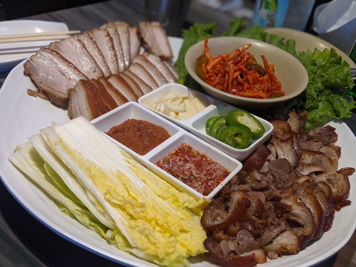 The menu highlights a variety of Korean classics like Haemul Pajeon (seafood pancake), spicy Daeji Galbi Jjim (braised pork ribs), and the ever-popular Korean chicken prepared in wings or drumsticks, balanced by the array of traditional banchan side dishes. The food tends toward the spicy and flavorful side, which pairs well with their selections of sake and beer, making it an inviting spot for those who enjoy bold tastes.